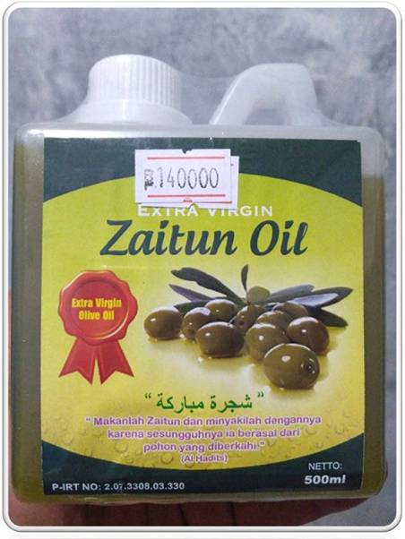 Extra Virgin Zaytun Oil berasal dari buah zaytun pilihan, memiliki banyak manfaat, selain terhadap kulit, zaytun dapat membantu menghilangkan lemak, mengangkat noda, bi-idznillah.